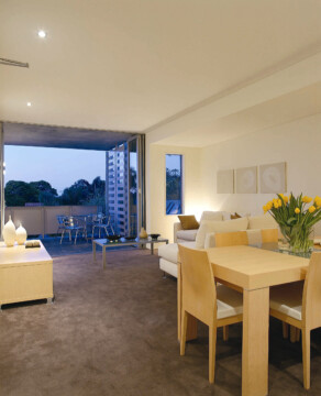 The apartments are arranged to maximise views to surrounding greenery and privacy from the commercial street below. Each apartment stretches the depth of the building to provide cross ventilation while the landscaped roof of the car park enhances the northern outlook towards the city.