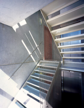 The building was constructed efficiently with straightforward detailing and develops the logic of simple precast concrete construction. It makes the most of the raw expressive combination of natural materials and a simple bold form, with high-quality internal finishes.