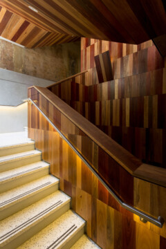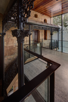 To comply with today’s building code, the rear ad hoc additions were removed and replaced by new unifies circulation. A void for the lift and fire stairs connects to complex interior floor levels and also brings in natural light, with access to the three original grand halls.