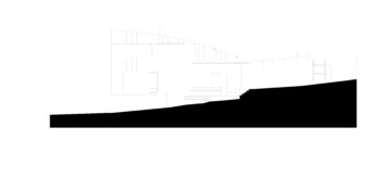 The folded plywood roof reaches through the wall to form a sunshade for the home’s exposed glazing, becoming an expressive element throughout the space.