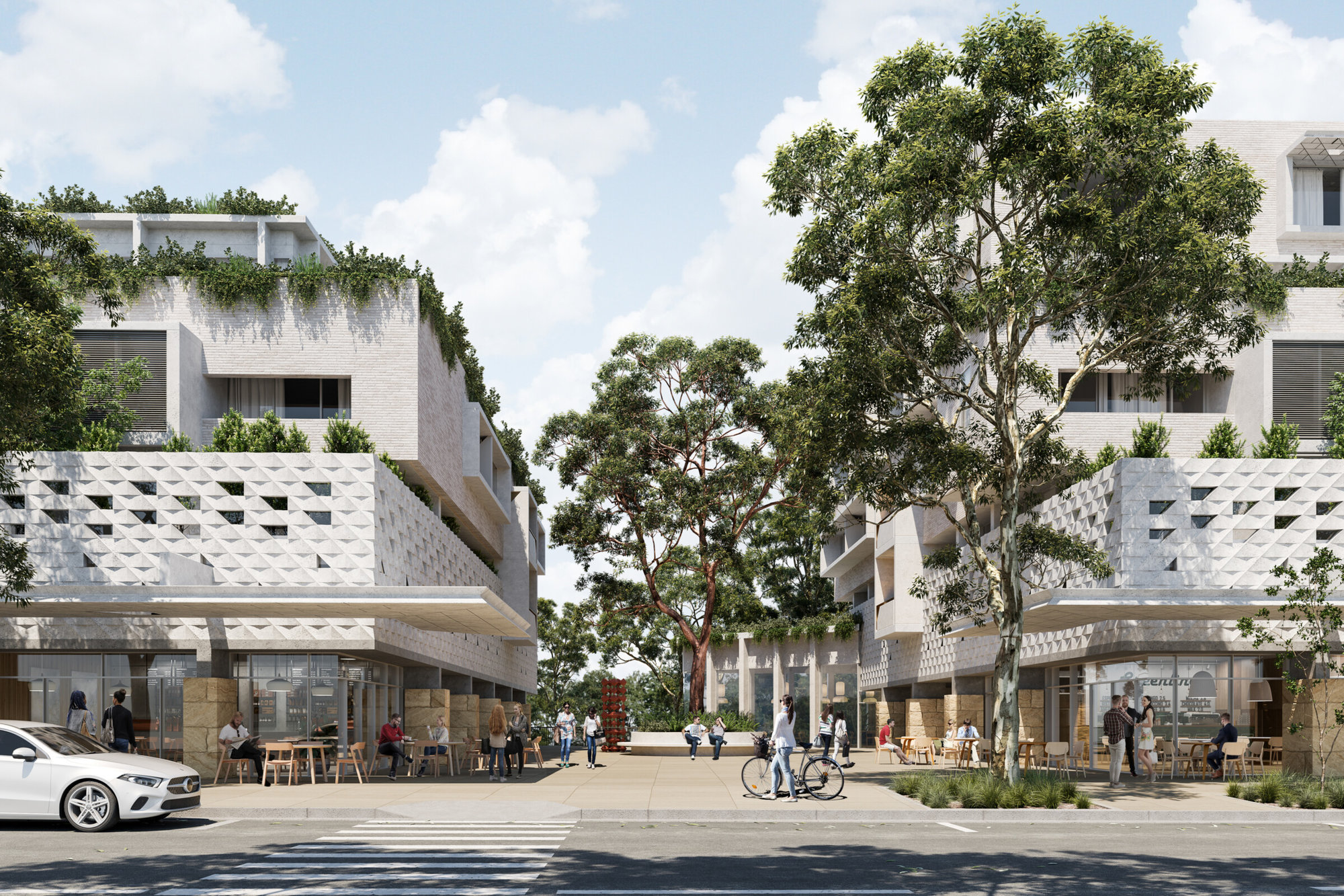 The proposal links a neighbourhood centre and high-end housing with restorative public open spaces connected to its historic suburb. Planned by Walter Burley Griffin and Marion Mahoney Griffin in 1919, Castlecrag’s communal areas, native landscaping, undeveloped foreshore and Prairie-style houses established the context for our proposal.