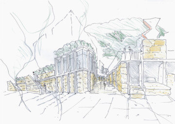 The proposal offers a material palette of sandstone, in-situ and precast concrete, brickwork and timber. A range of densities, details, textures and tones that refer to and acknowledge the history of Castlecrag while ensuring its future.
