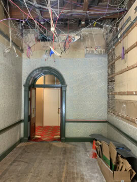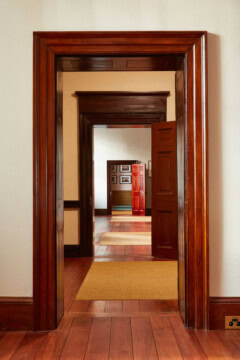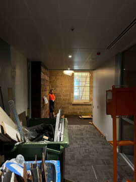 Latent conditions uncovered during early works, and well into construction, provided additional challenges that meant in-depth collaboration with the client, key stakeholders and a host of consultants and subcontractors was critical to the delivery of the project. Samples were taken of original and early wallpaper while the rest was stabilised in situ; critical missing patches of original plaster and lath were infilled with a contemporary application; an original section of sandstone wall was gently brush-cleaned and given 27 coats of lime wash, per its original finishing, to enable its ultimate display. Walls lined with 1850s timber packing crates, likely used to ship the 19th century cast iron building now the Legislative Council Chamber, were uncovered and conserved. No two rooms were the same.